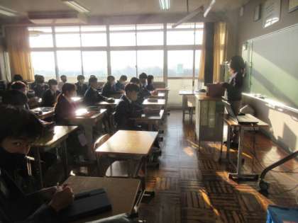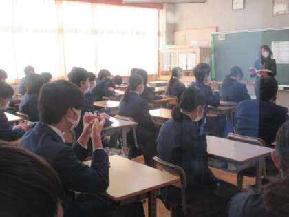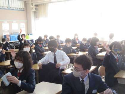 どのクラスも穏やかな雰囲気の朝の会を進めていました。1年生は,保健委員がハンカチチェックをしていました。