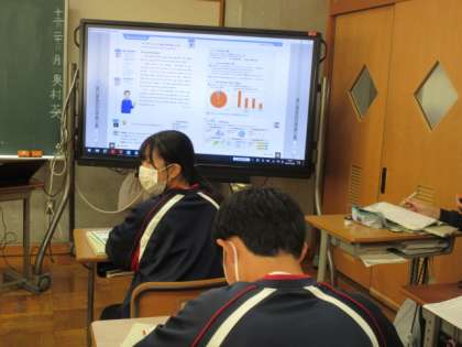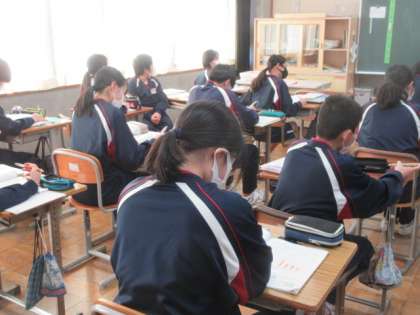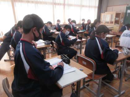 2年生の英語の授業は,教科書にある問題への取組。皆真剣に取り組んでいました。