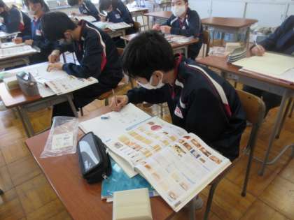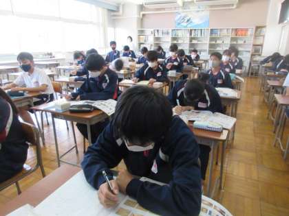 2年生の美術の授業は,木箱作り。彫り進めていくデザインを考えていました。