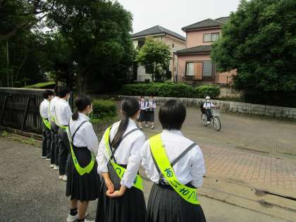 月曜日は、あいさつ運動です。今日は部活動もありませんので、同じ時間内の登校です。あいさつあふれるけやき台中学校です。