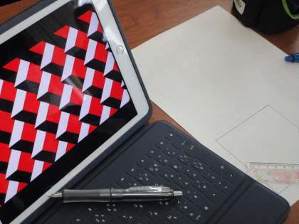 1年生の美術の授業の様子です。「美のつながる形」を題材に、今日はアイデアスケッチの完成を目標に活動しました。