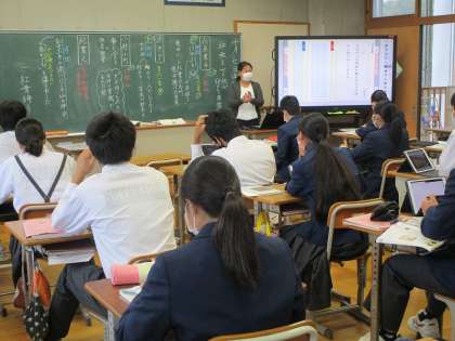 3年生の国語の授業の様子です。古今和歌集を題材に和歌の技法について学びました。