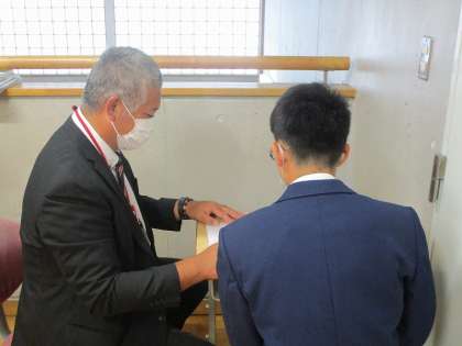 前期終業式後は学級活動の時間です。担任から生徒一人一人に前期の頑張りを称賛し、通知表を配付しました。