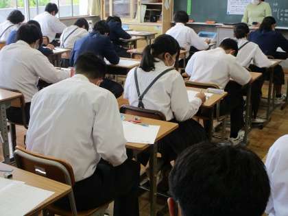 3年生は実力テストに取り組んでいます。自分の進路実現に向けて頑張っています。