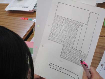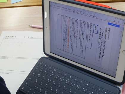 3年生の国語の授業の様子です。グループになって、自分がまとめた新聞を紹介し合い、よりよい新聞に編集しました。