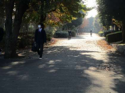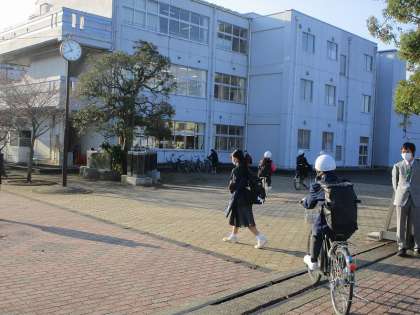 今朝の登校の様子です。徐々に冬支度をしている生徒の姿が目に付くようになりました。