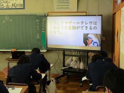 3年生の道徳の授業参観の様子です。よりよく生きる喜びをテーマに、マザーテレサの生き方からどんなことを学んだか仲間と話し合いました。