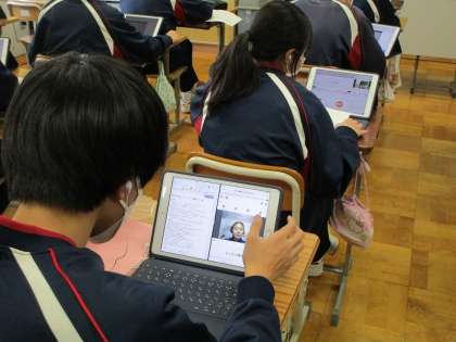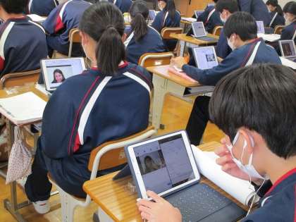 3年生の英語の授業の様子です。DMM英会話の時間です。自分の英語力を最大限に使って,会話を楽しんでいました。