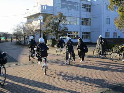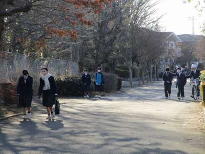 今朝の登校の様子です。今日から1年生も通常登校です。冷たい風に負けずに頑張っていきましょう!