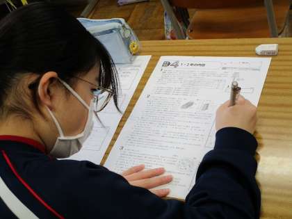 3年生の理科の授業の様子です。ワークシートに取り組んでいます。集中力はさすが3年生です。
