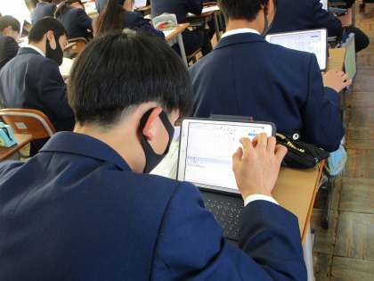 2年生の国語の授業の様子です。物語創作のための準備をしようをテーマに、メタモジを活用してまとめています。