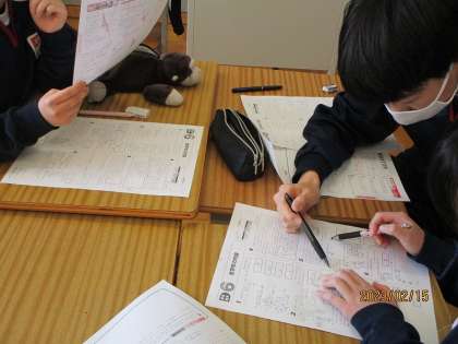 3年生の数学科の授業の様子です。ワークシートを仲間と協力して解決しました。
