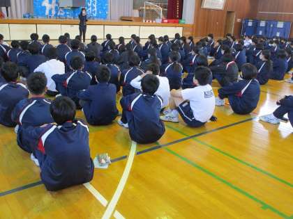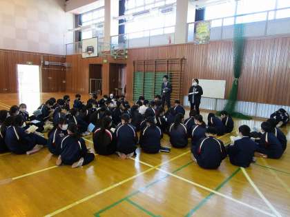 5時間目終了後にスキー宿泊学習の出発式を行いました。実行委員長あいさつなどのあと、係ごとの打合せも行いました。楽しみですね。