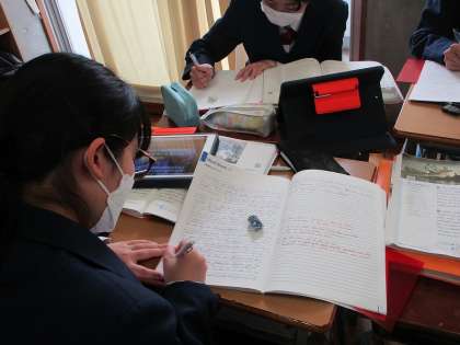 2年生の英語の授業の様子です。英文を写し、日本語訳するまとめの学習を行いました。