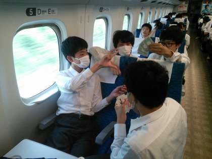 車内の様子です。カードゲームや会話を楽しんだり、楽しく過ごしています。