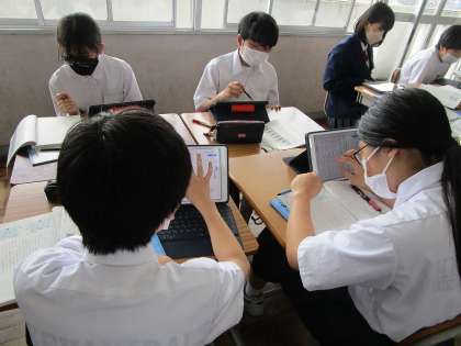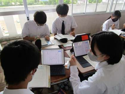 2年生の国語の授業の様子です。ハトが首振りをする要因は何だろうをテーマに、グループで意見を交換しました。