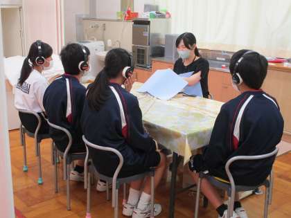 帰りの会終了後に、学級ごとに聴力検査を行っています。今日は1年3組の皆さんでした。