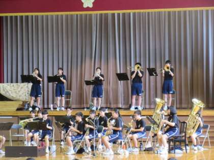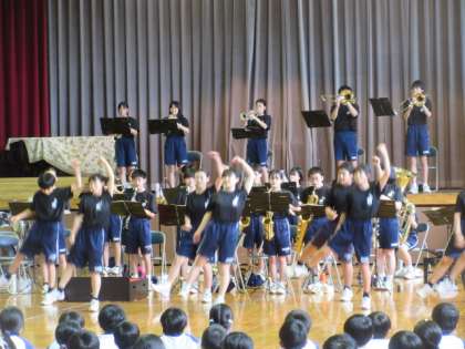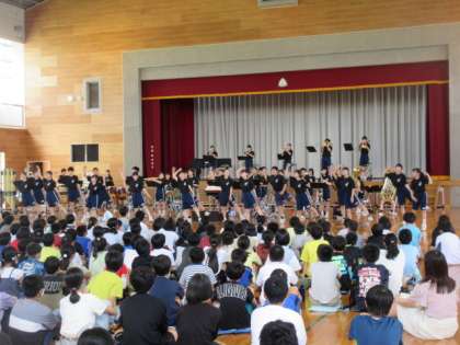 吹奏楽部が高野小と松ケ丘小を訪問し,出前演奏会を行いました。美しい演奏とパフォーマンスで小学生を魅了しました。