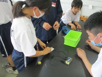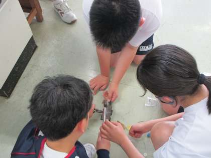 1年生の理科の授業の様子です。金属に共通する性質は何だろうをテーマに、予想を立て、実験しました。