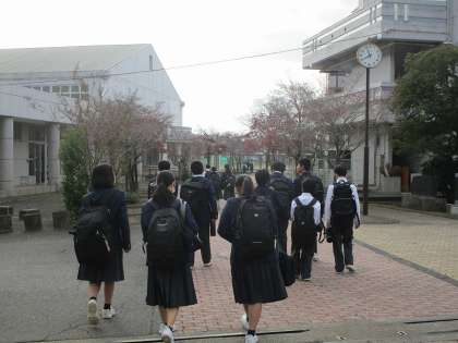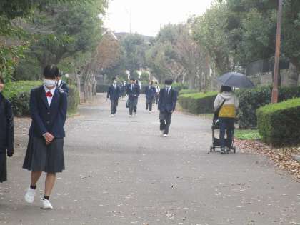 今朝の登校の様子です。肌寒い朝です。今日から全学級が揃いました。頑張っていきましょう!