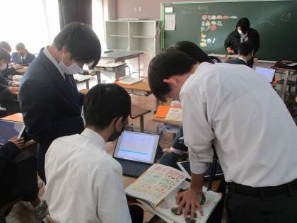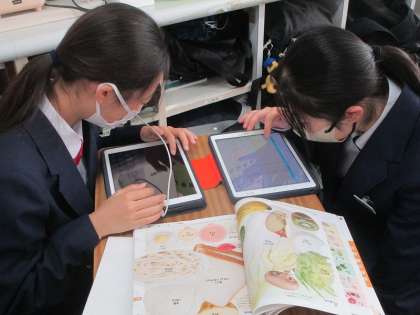 2年生の家庭分野の授業の様子です。バランスのよい献立を考えようをテーマに、学習を進めました。