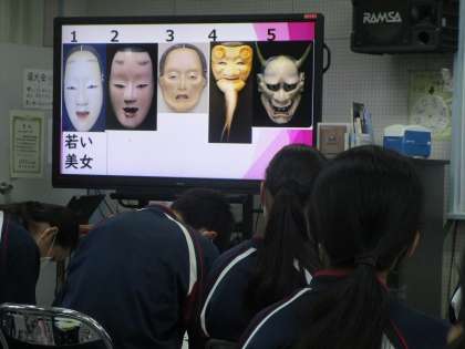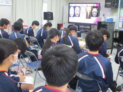 3年生の音楽の授業の様子です。能を親しみ、その音楽を味わおうをテーマに、学習を進めました。