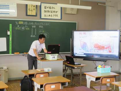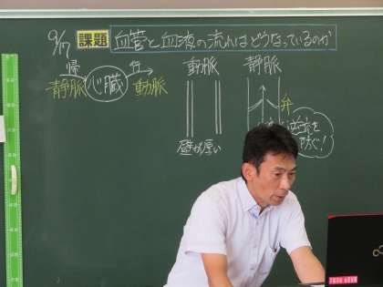 結果と血液の流れについて,動脈と静脈の流れ方の違いを確認していました。