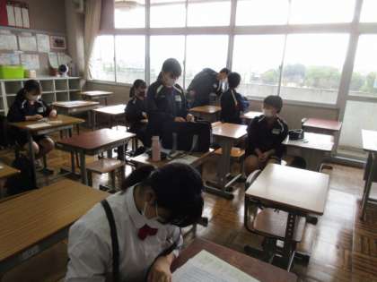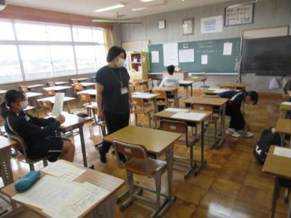 密を避けて〜3年生実力テスト 公開日 2021/09/22 更新日 2021/09/22 授業の様子 密を避けるべく,出席番号でクラスを半分に分け,前半が自クラスで,後半が2年生のクラスでテストを受けます。席も一つおきと離れています。