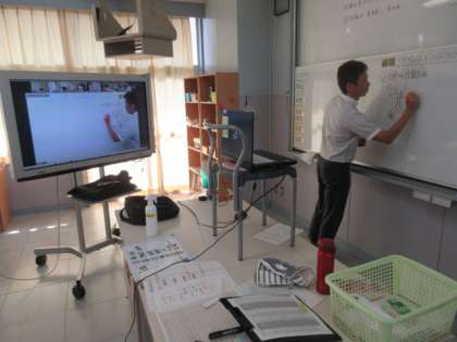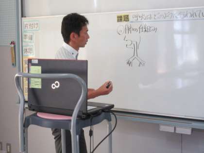 2年生の理科のオンライン授業。いつもとは違う教室からの配信ですが,鈴木先生の熱い授業内容は変わりません。