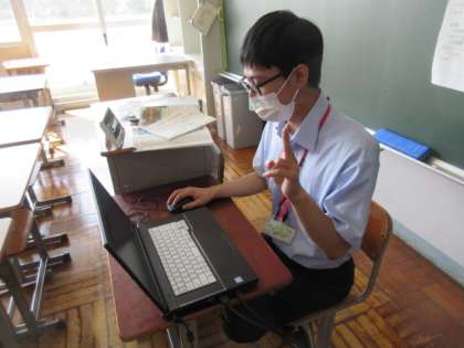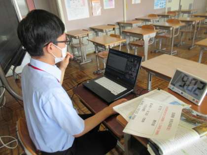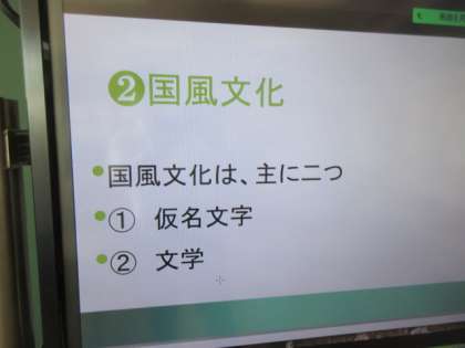 1年生の社会のオンライン授業は国風文化について。先生の解説をノートにまとめていました。