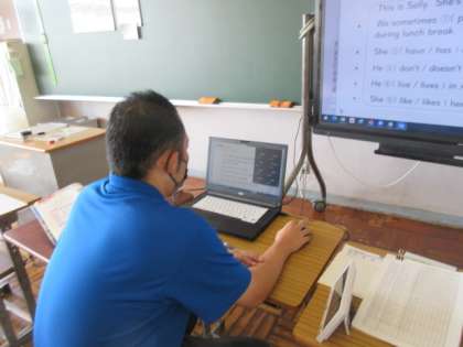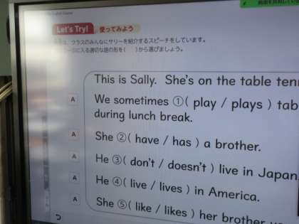 1年生の英語のオンライン授業の様子。デジタル教科書を用いて練習問題に取り組んでいました。