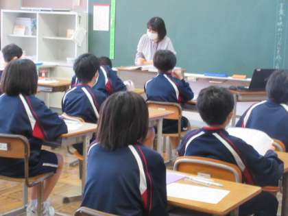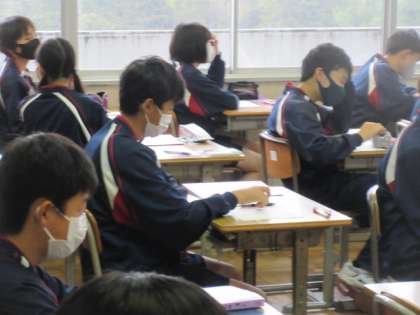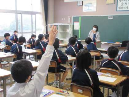 1年生の国語の授業は,教科書本文の確認。先生の内容に関する質問に,積極的に答えていました。