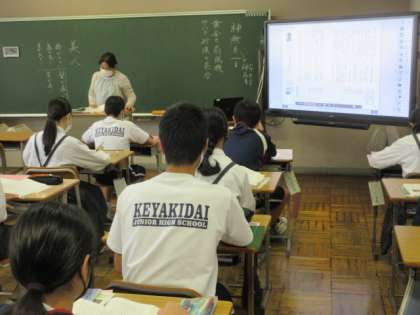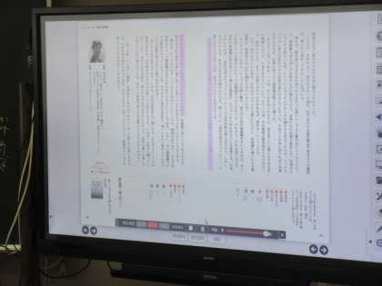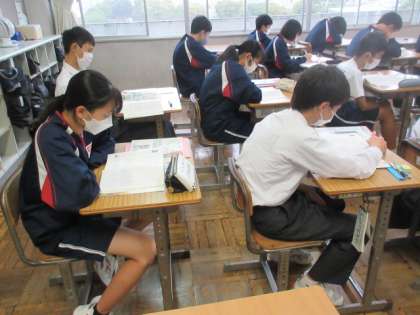 2年生の国語の授業。教科書の朗読を真剣に聴いていました。