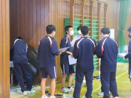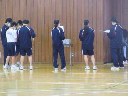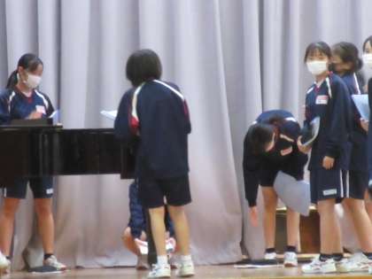 2年生の音楽の授業は合唱練習。密を避けるために,体育館で間隔を開けての練習です。