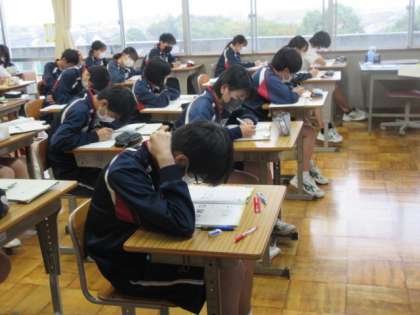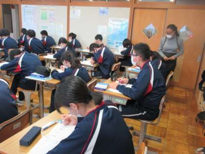 3年生の英語の授業はリスニング。皆真剣に聴いていました。