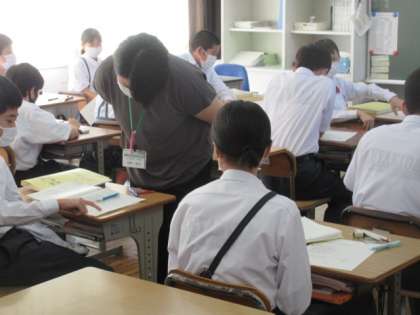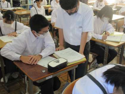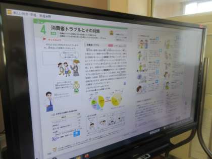 1年生の家庭科の授業は消費者トラブルについて。チェックシートを用いて,危険度を確認していました。