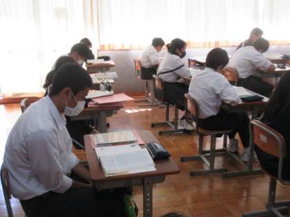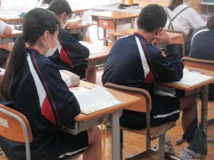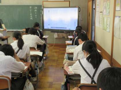2年生の国語の授業は説明文について。デジタル教科書の朗読を真剣に聴いていました。
