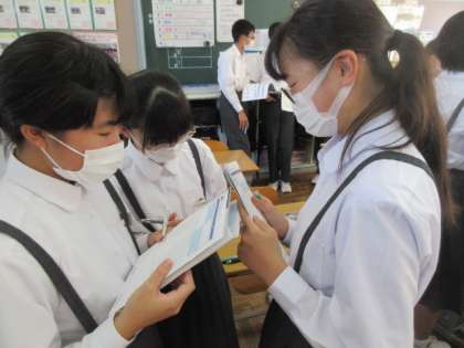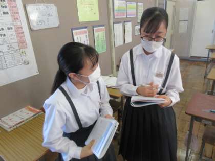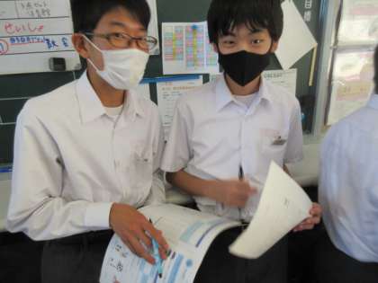 2年生の英語の授業は会話文の練習。皆積極的に取り組んでいました。