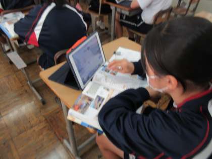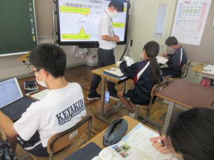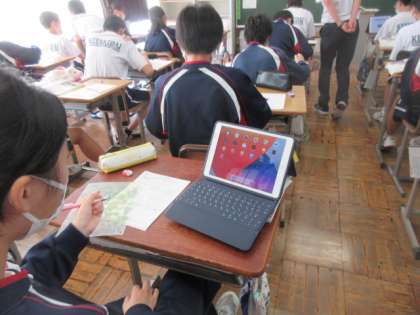 2年生の社会の授業は九州地方について。特に農業について,タブレットを用いて調べていました。