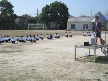 3年生の学年練習。実行委員が団体種目について説明していました。