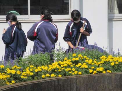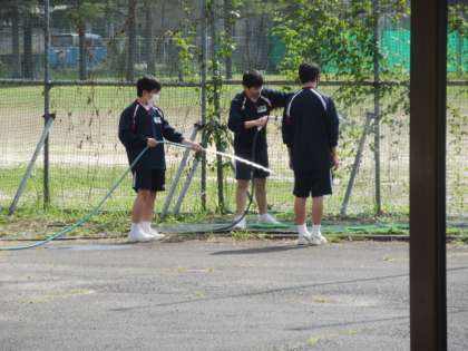 3年生の技術の授業は,栽培。トマト栽培の片付けを協力し合って行っていました。