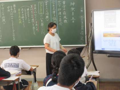 2年生の国語の授業は説明文。各段落の要旨や筆者の考えをまとめていました。