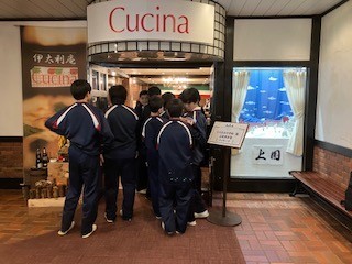 夕食(バイキング)の様子です。時間前から並んで待っていました。たくさんおかわりしていました。