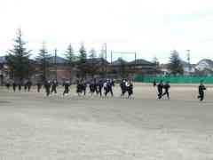 準備運動や五分間走を行って、しっかり体を温めてから、ティーボールに取り組みます。どのグループも素早く準備し、活動に入りました。